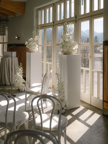 Klare Linien, Architektur und sanftes Licht setzen feine Details in den Mittelpunkt und formen ein Wedding Design, das Minimalismus und Zeitlose Eleganz auf moderne Weise verbindet.